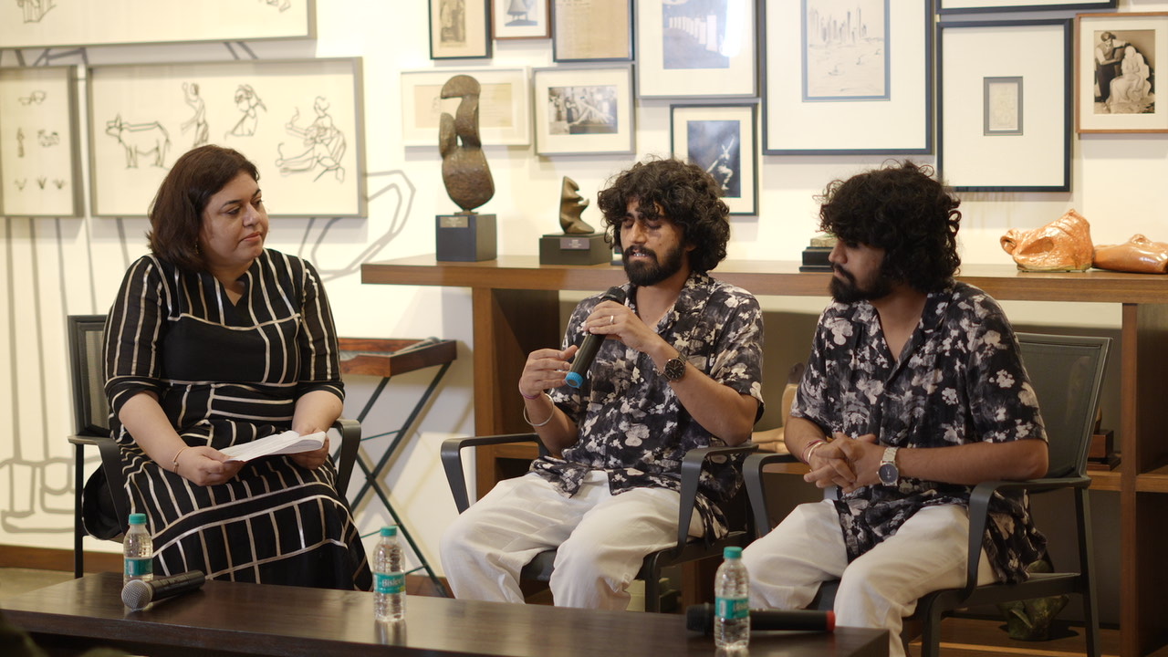 Twin artists Rohan & Roshan Anvekar, recipients of the Amar Nath Sehgal Inception Grant, joined us for a conversation with curator Priyal Pall. Known for a practice that merges satire, surrealism, and socio-political critique, the Anvekar brothers shared insights into their journey, their collaborative process, and the ways their individual practices complement one another. With Priyal Pall’s expansive understanding of contemporary art and culture guiding the exchange, the discussion focused on emerging talent and their contributions to the growing community.
