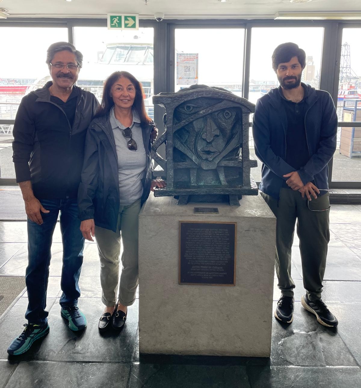 This sculpture was originally designed by the artist for the opening of the UN Conference on Sanctions Against Racist South African Regime in 1986. It was made to highlight the UN’s opposition to the apartheid government and renew its appeal for the release of Nelson Mandela and other political prisoners. The sculpture was unveiled by Secretary General Javier de Cuellar and Amadou Mahtar M’Bow former Director General of UNESCO.