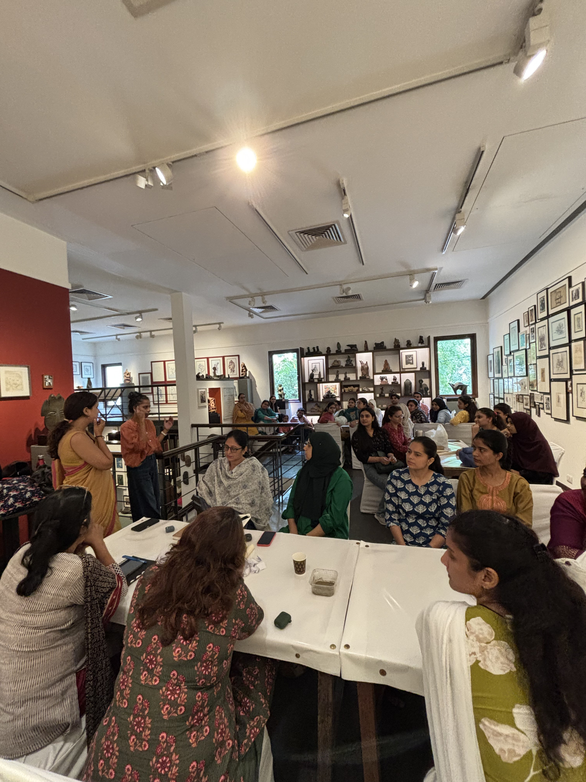 40 participants came together for a workshop, conducted by artist Parul Sharma at the museum. The session invited them  to translate memories into clay. Guided by sounds from everyday life — subtle noises often overlooked yet deeply embedded in personal memory — the workshop encouraged participants to rekindle moments from their past. What emerged were clay slabs that carried stories of lives lived, each piece becoming a tangible expression of memory, reflection, and their connections with life.