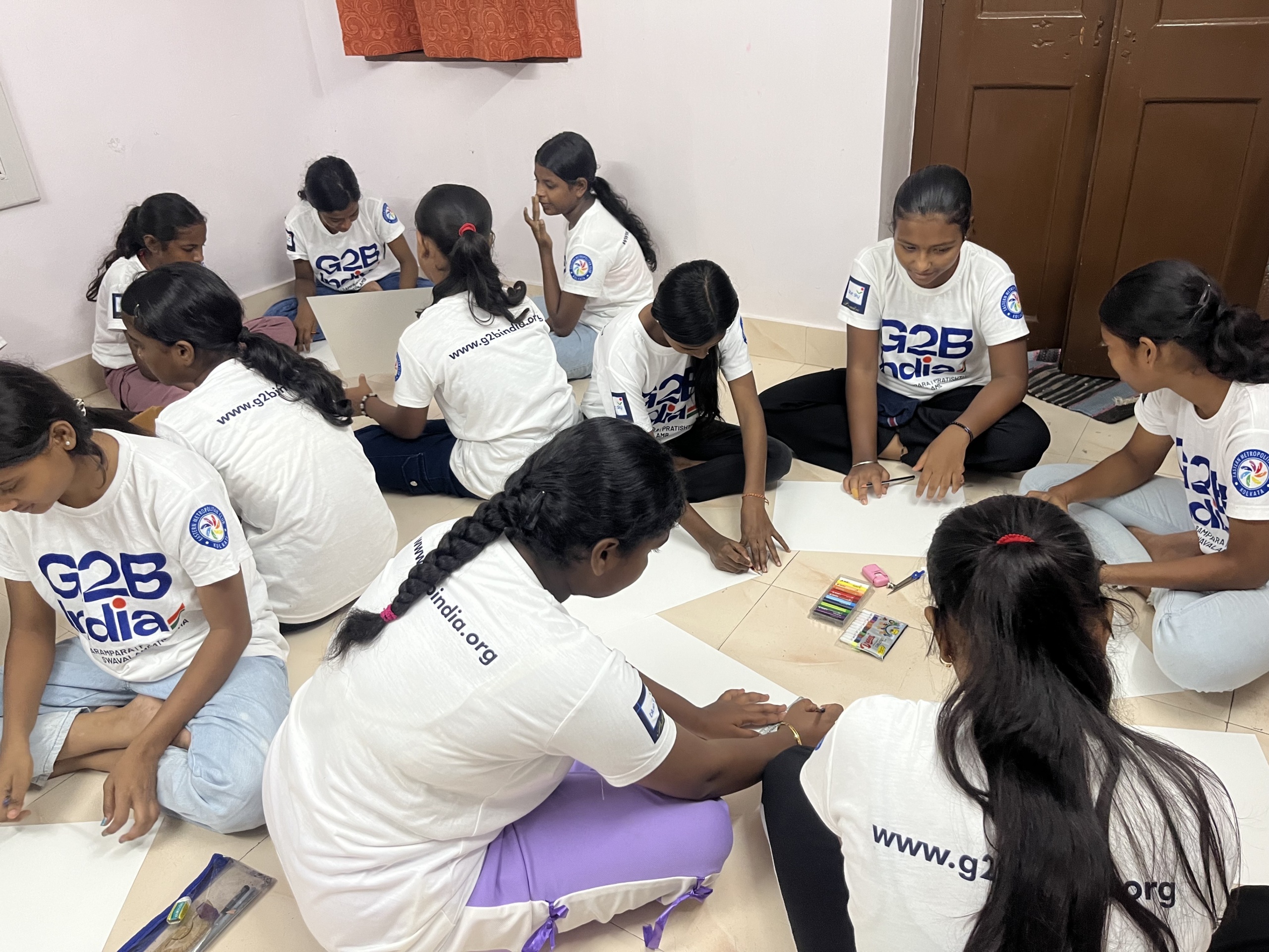 Led by emerging artist Sriparna Dutta, the sessions were designed for students from the G2B, a girl-focused empowerment NGO, to explore their creative expression through drawing and storytelling.